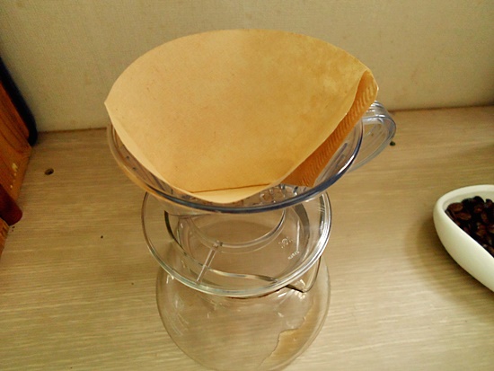 커피 서버 위에 드리퍼를 올려놓습니다.