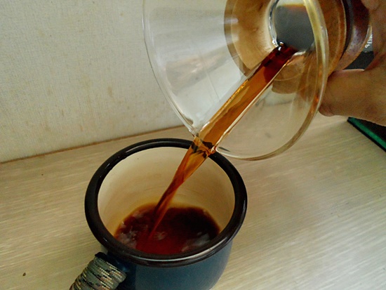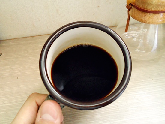 그리고 머그잔으로 커피를 옮겨담습니다.