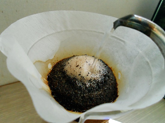 이제 뜨거운 물을 부어 뜸들이기를 합니다.
