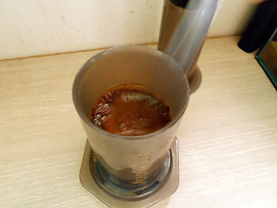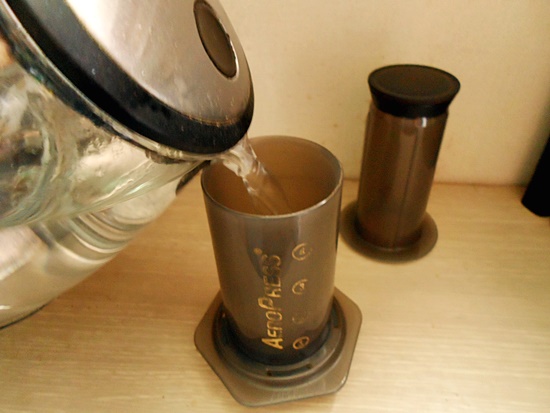 에어로프레스를 텀블러 위에 올려