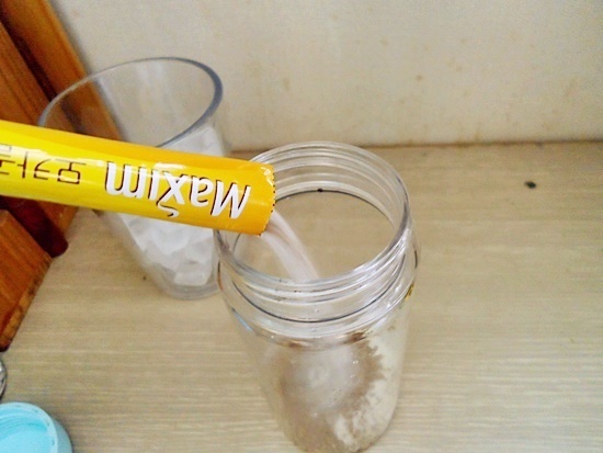 작은 텀블러에 믹스커피 2개를 넣어 줍니다.