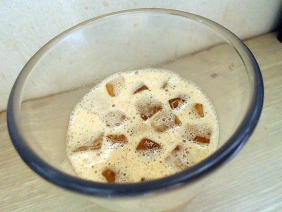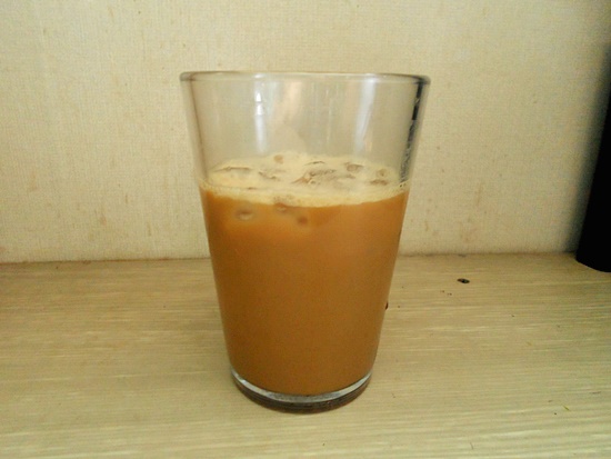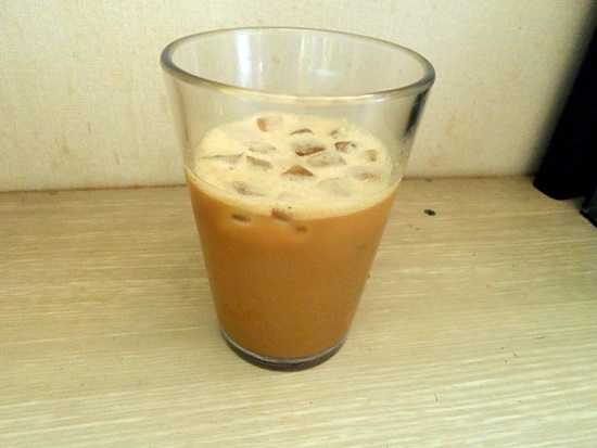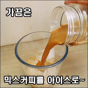 앞서 준비한 얼음잔에 녹은 믹스커피를 부어주면