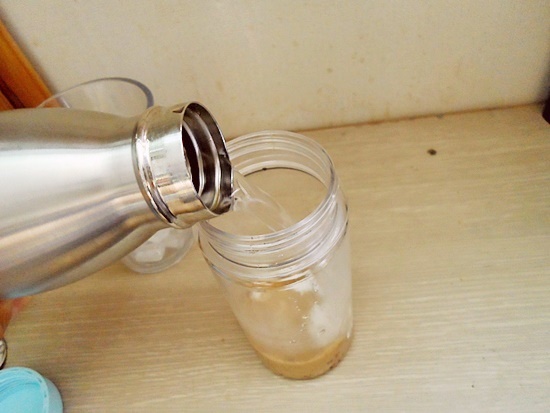 따뜻한 물을 약 50~80ml정도만 붓고,