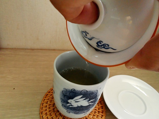 약 1분정도 우려낸 후, 우려진 우롱차를 잔에 따라냅니다.
