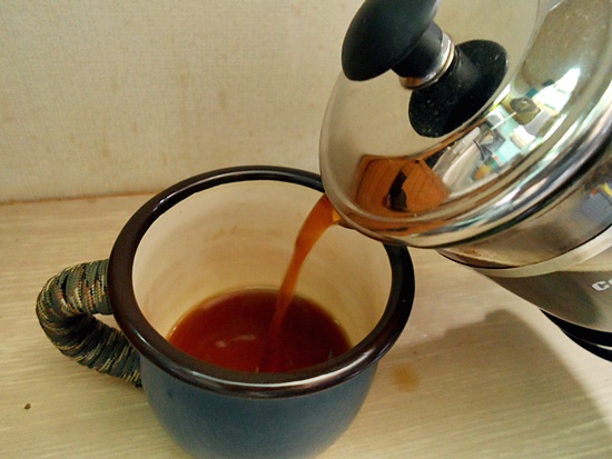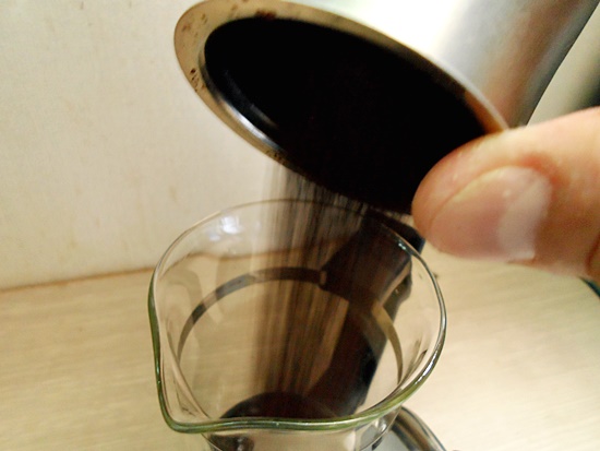 이 때 그냥 따라내면 커피미분이 머그잔에 그대로 따라나오니