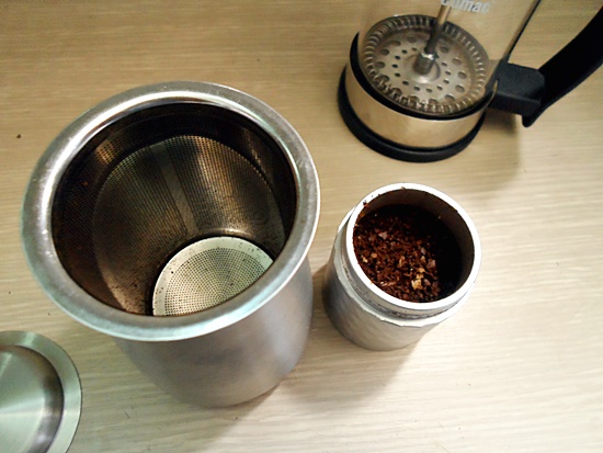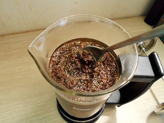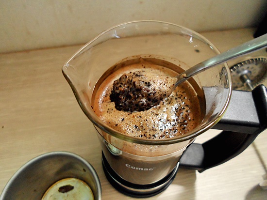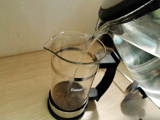 분쇄한 원두가루를 프렌치프레스에 넣고,