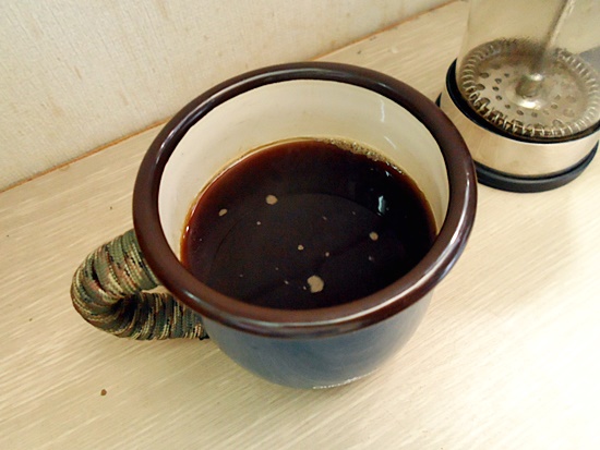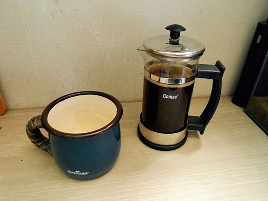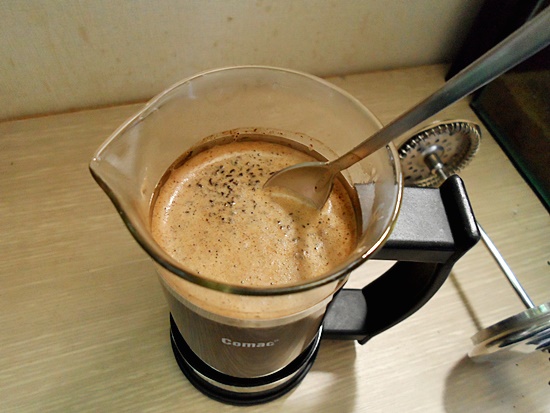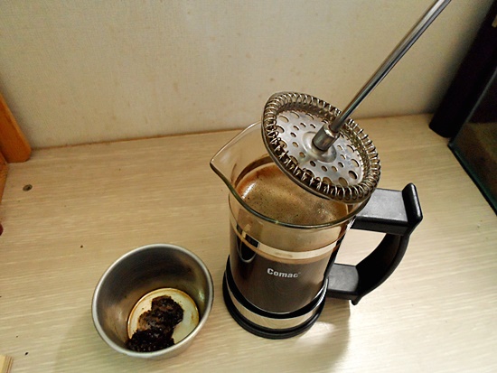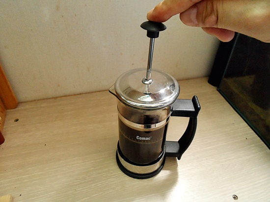 프렌치프레스로 커피를 내려마시는 것을 보았습니다.