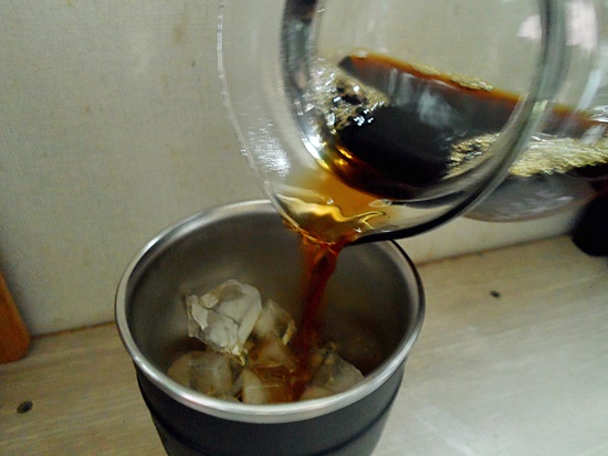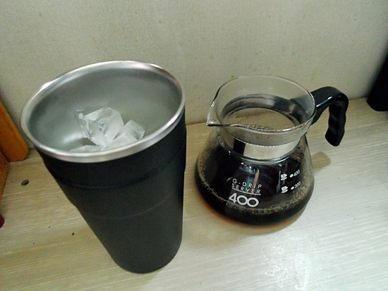 그리고 앞서 추출한 드립커피를 얼음이 담긴 텀블러에