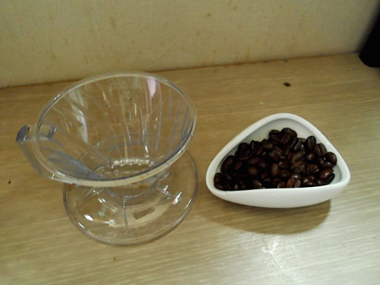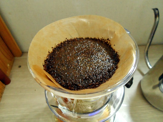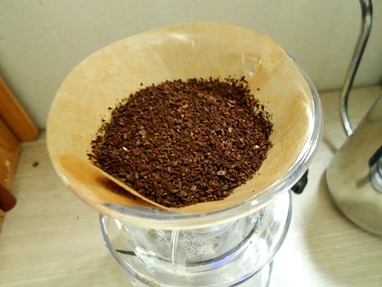 원두를 드립크기로 분쇄하여 종이필터에 붓습니다.