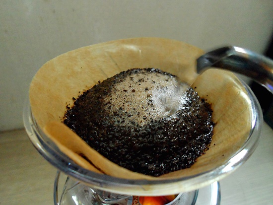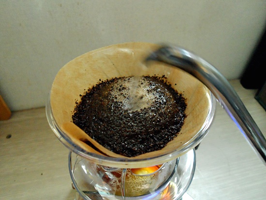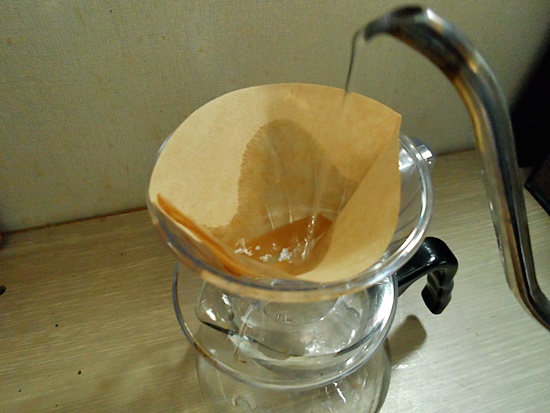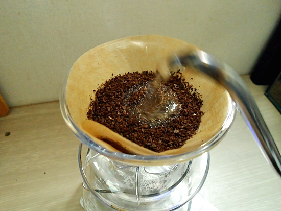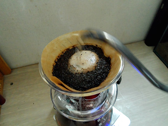 본격적인 물붓기로 드립커피 추출을 시작합니다.