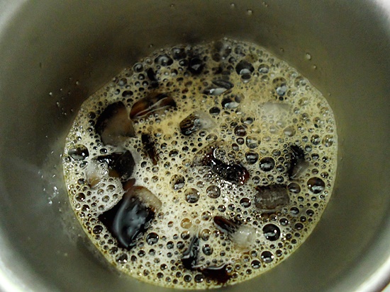 뜨거운 물을 부어 뜸들이기를 합니다.