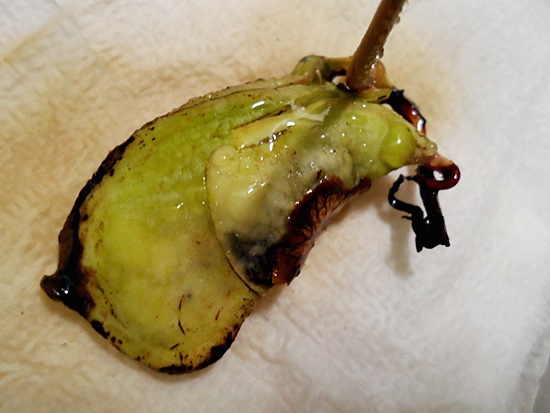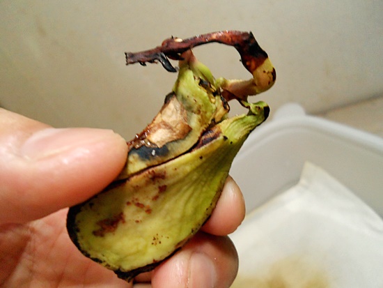 망고씨앗 아랫부분은 씨앗이 반으로 갈라져 있습니다.