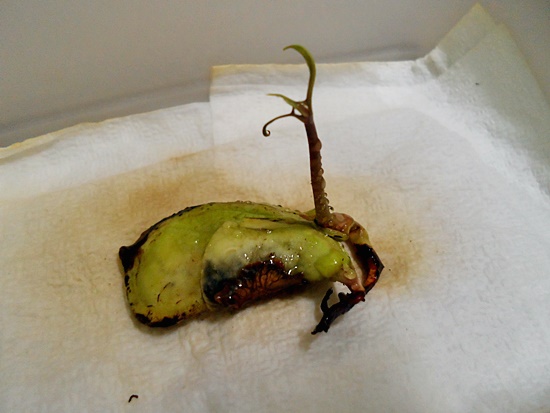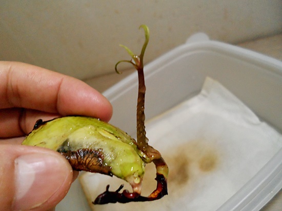 아마도 줄기가 나오면서 씨앗을 반으로 갈라버린듯 합니다.