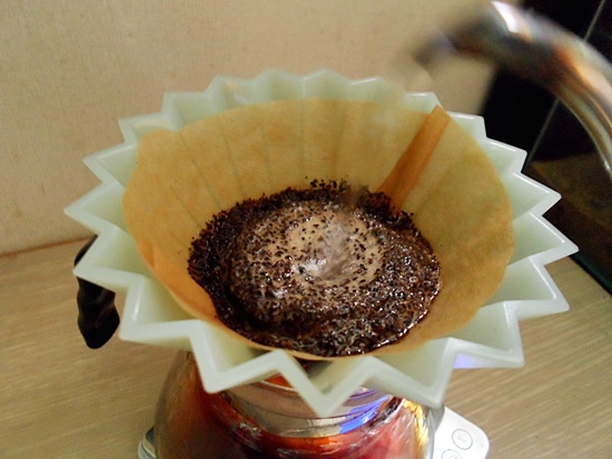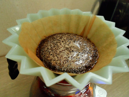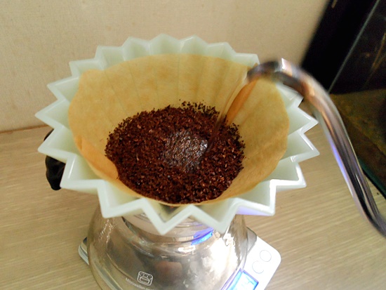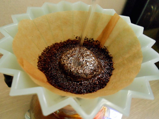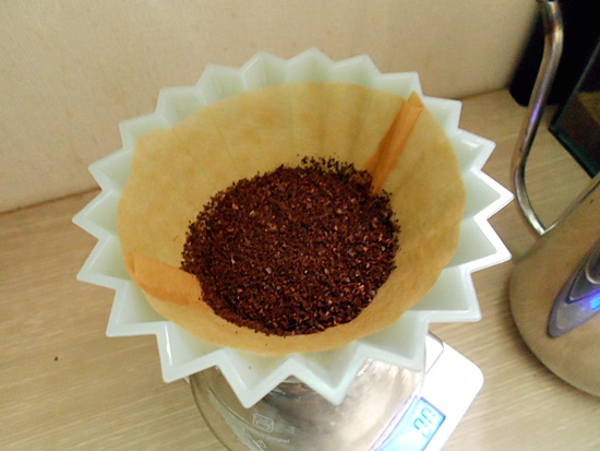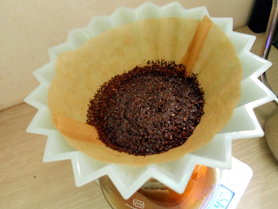 원두를 드립크기로 분쇄하여 종이필터에 부어 줍니다.
