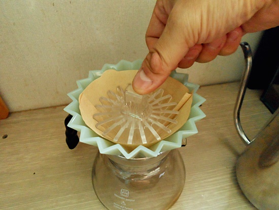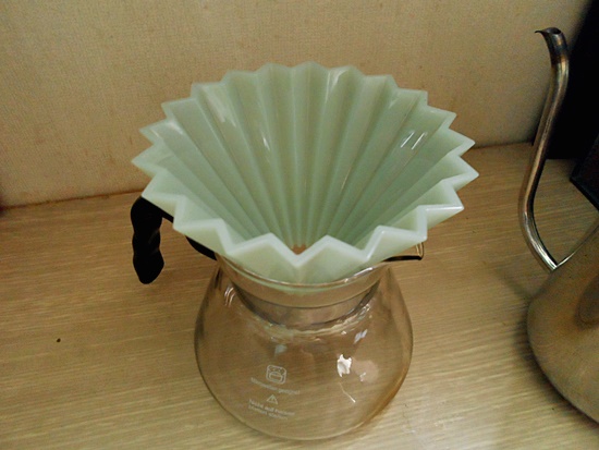 오리가미 드리퍼를 커피서버 위에 올리고,