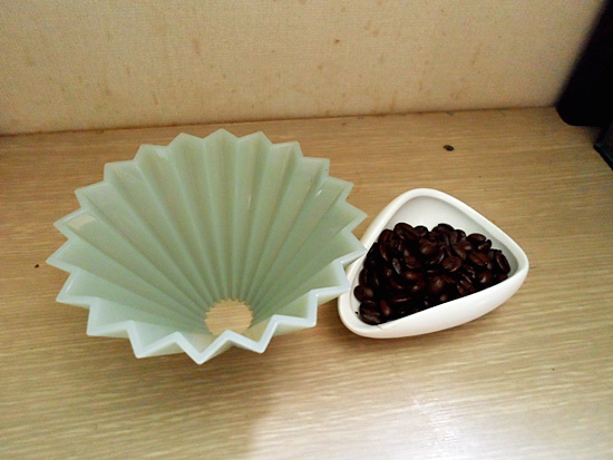 오리가미 드리퍼와 여기에 사용할 원두 18g을 준비했습니다.
