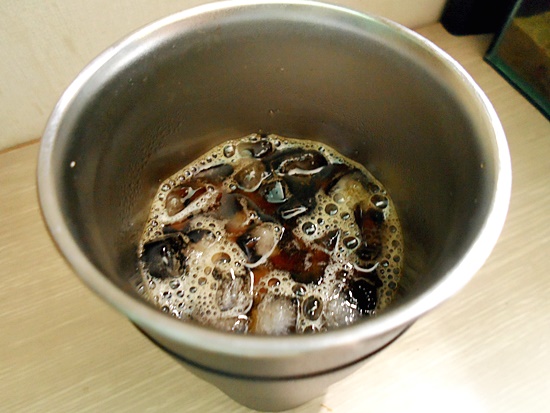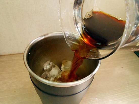 그리고 추출된 커피를 텀블러로 옮겨담습니다.