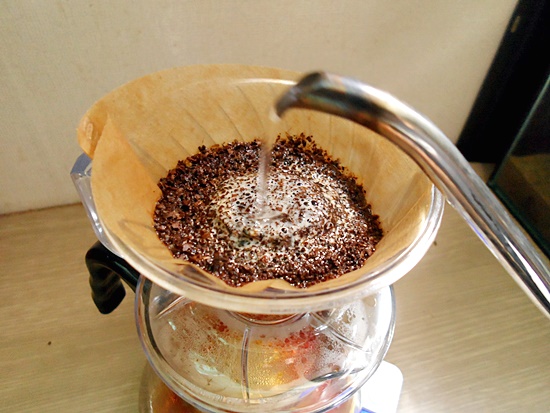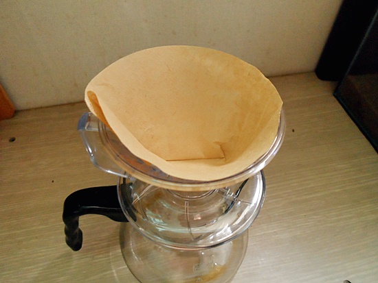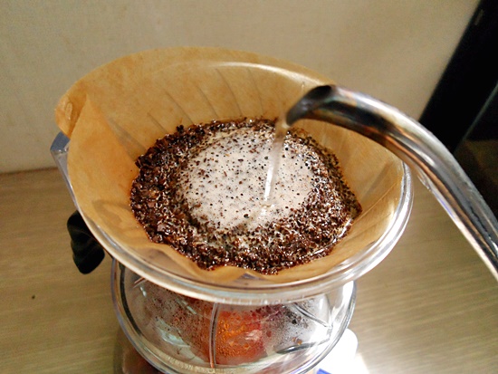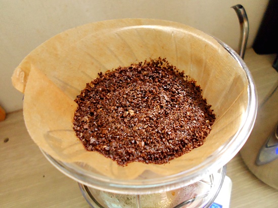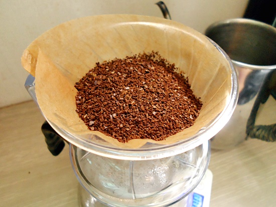 원두를 드립크기로 분쇄하여 종이필터에 부어줍니다.