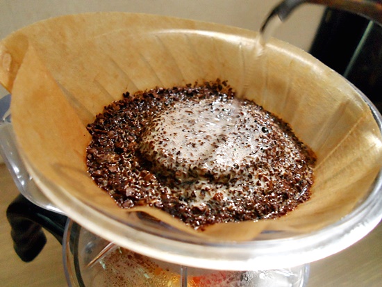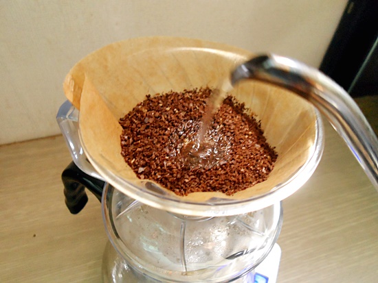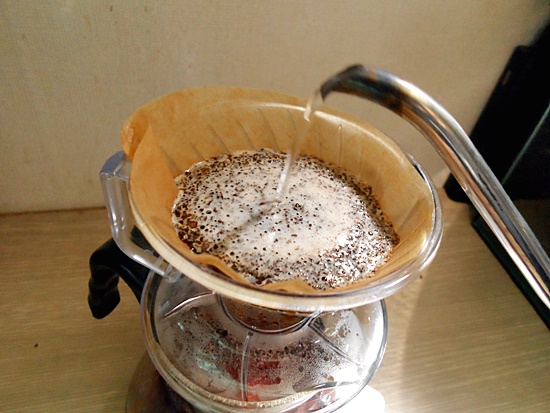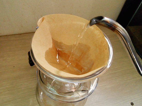종이필터를 넣은 후, 뜨거운 물을 부어
