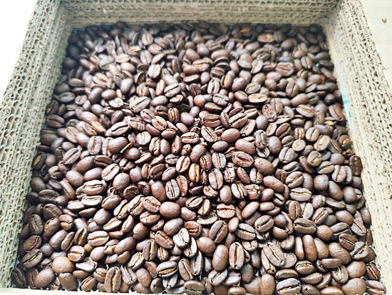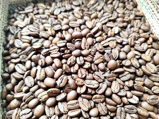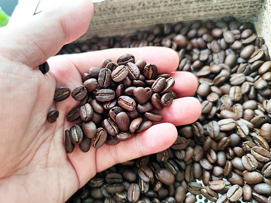 잠시 후, 첫번째 홈로스팅 된 원두들이 나왔습니다.