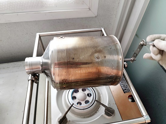 배출하여 쿨링하는 방식으로 2배치 로스팅을 진행하였습니다.