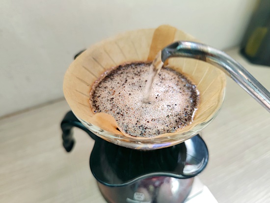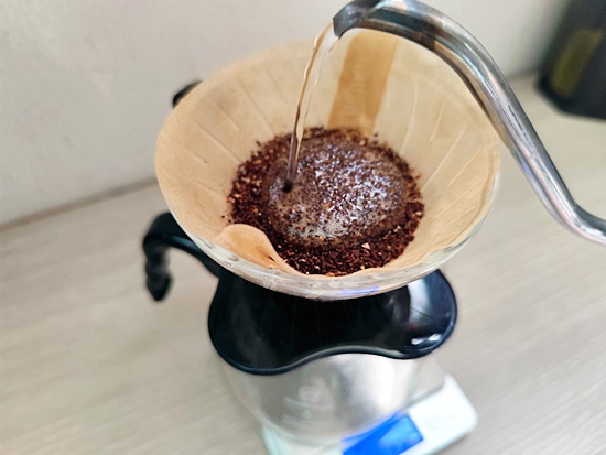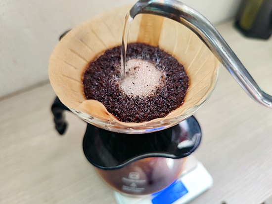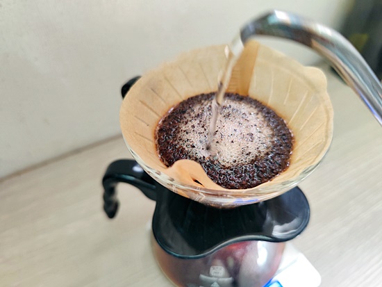 뜨거운 물을 약 50ml씩 원을 그리며 부어줍니다.