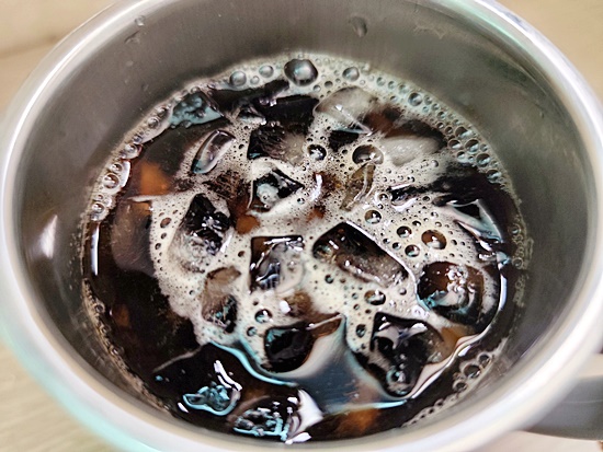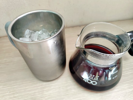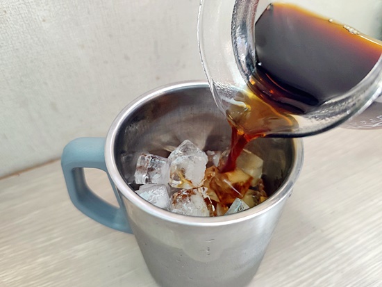 앞서 추출한 커피를 잔에 옮겨담습니다.