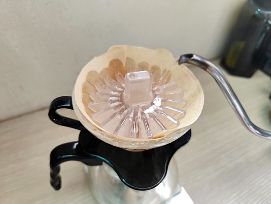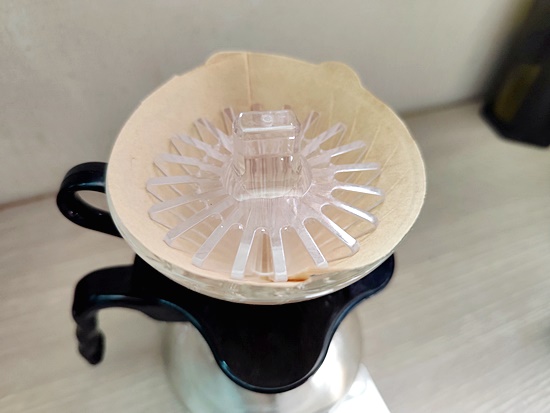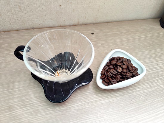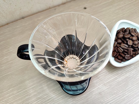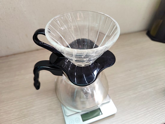 하리오 V60 드리퍼를 커피서버 위에 올려놓고,