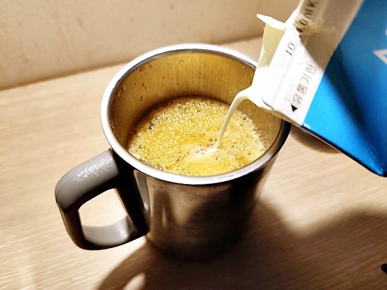 우유를 첨가하여 카페라떼를 만들어 보기로 합니다.