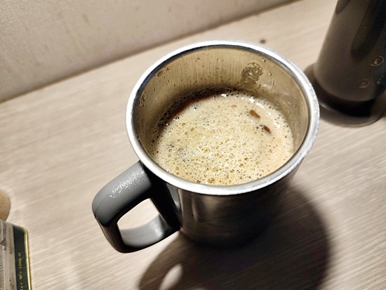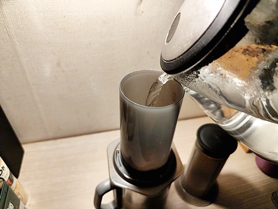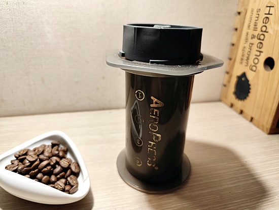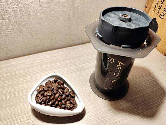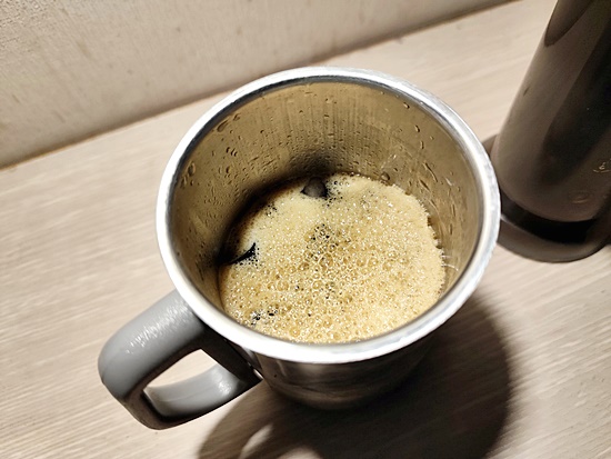 평소 에어로프레스에 사용하는 물양만큼 넣었기에