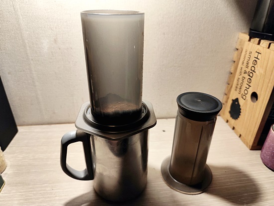 그래서 에어로프레스로 커피를 진하게 내린 후,