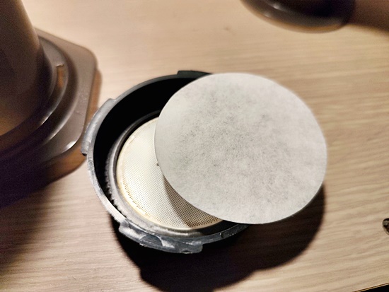 필터캡에 종이필터를 한장 넣고, 결합합니다.