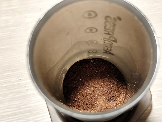 원두를 곱게 분쇄하여 에어로프레스에 넣고,