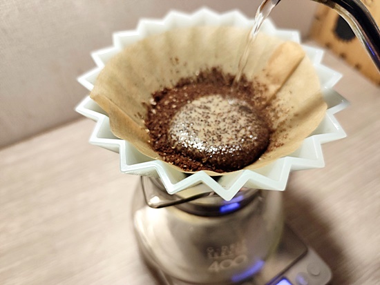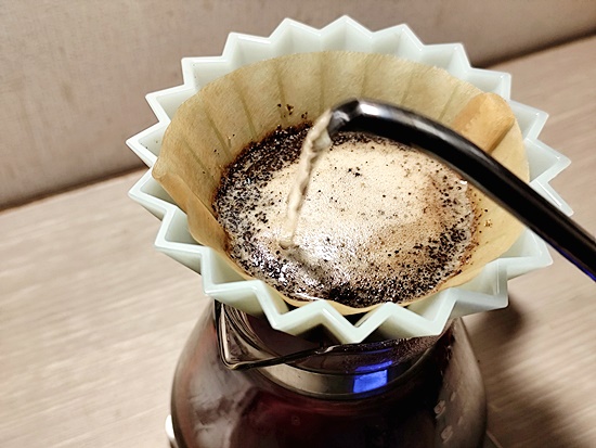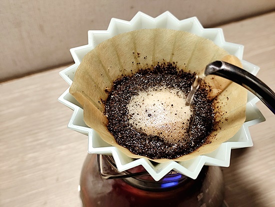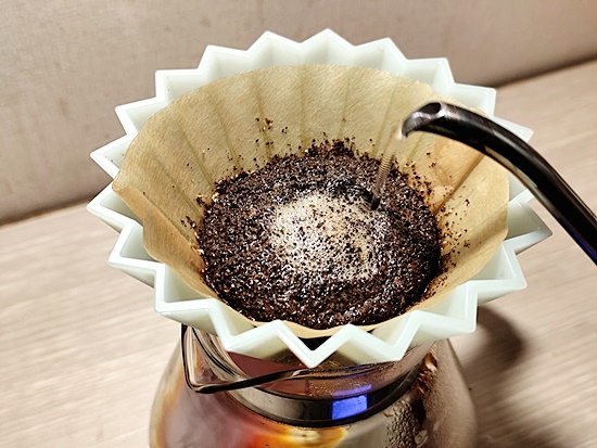 본격적인 물붓기로 커피를 추출하기 시작합니다.