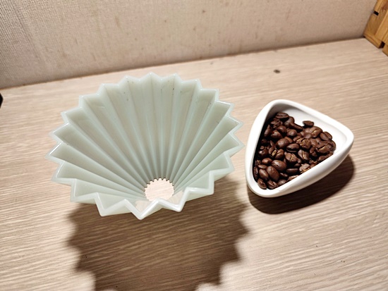 오리가미 드리퍼와 여기에 사용할 원두 18g을 준비하였습니다.