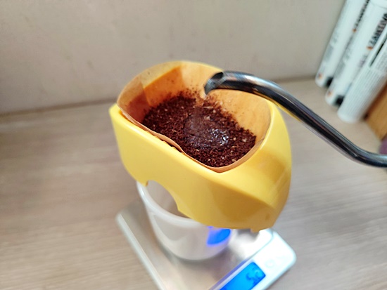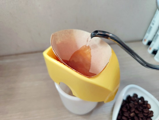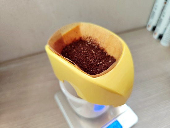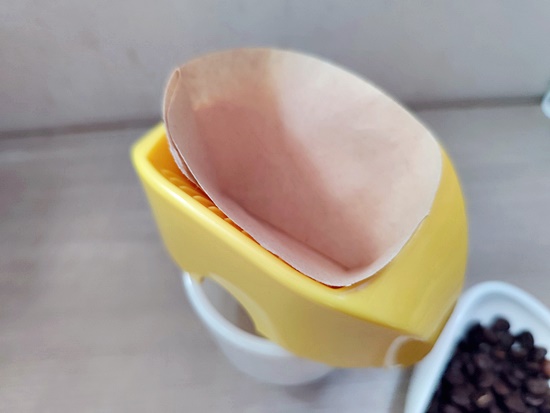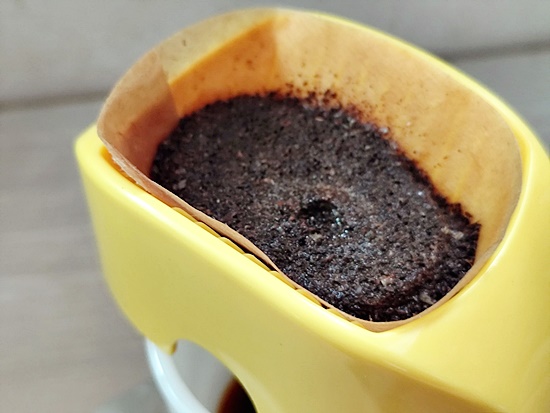 원두를 드립크기로 분쇄하여 종이필터에 붓습니다.