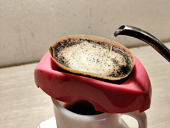 머그잔 위에 드리퍼를 올려놓았습니다.