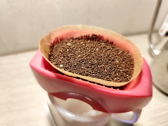 종이필터를 알맞게 접어 드리퍼에 올려놓고,