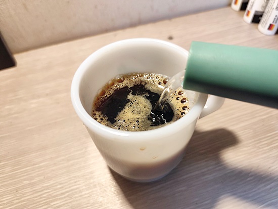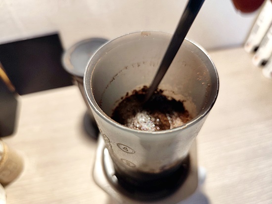 스푼으로 원두가루를 잘 저어 섞어주고,