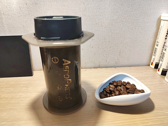 오늘은 에어로프레스로 진~하게 커피를