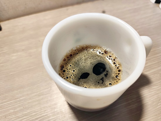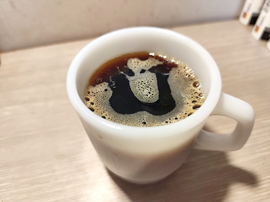 약간의 크레마가 떠 있는 신선한 아메리카노인데요.