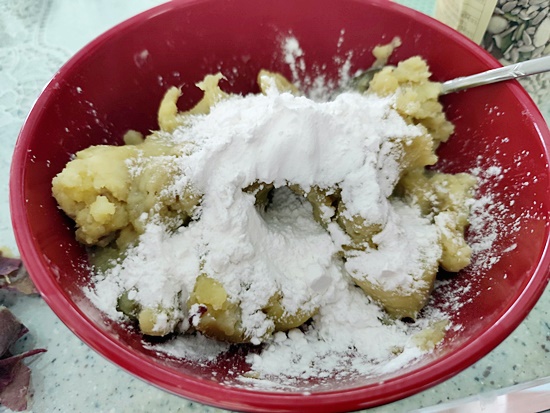 여기에 전분 2스푼을 넣어 잘 반죽해줍니다.