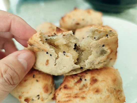 20분이 지나 꺼낸 고구마빵의 모습입니다.