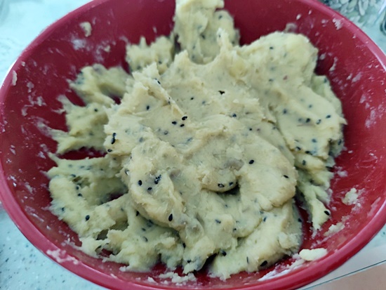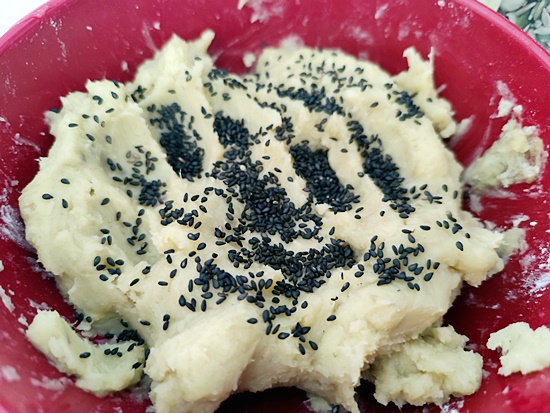 흑깨 또는 씨앗을 넣어 반죽해 줍니다.