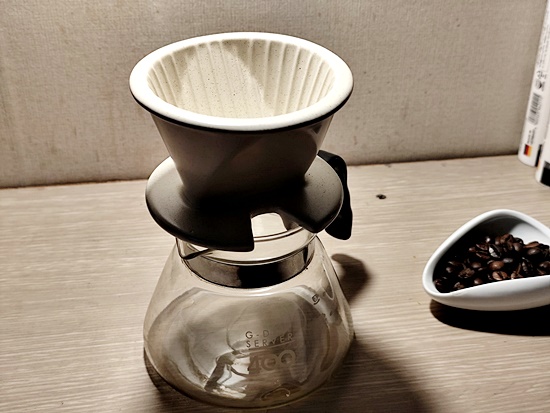 커피 서버 위에 드리퍼를 올려놓고,