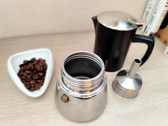 오늘 사용할 스테인리스 재질의 모카포트입니다.