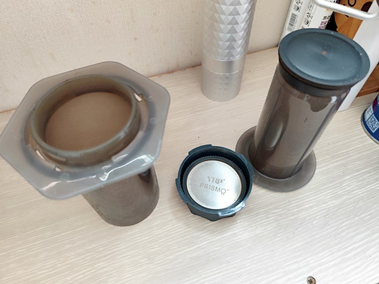 에어로프레스를 분리하고,