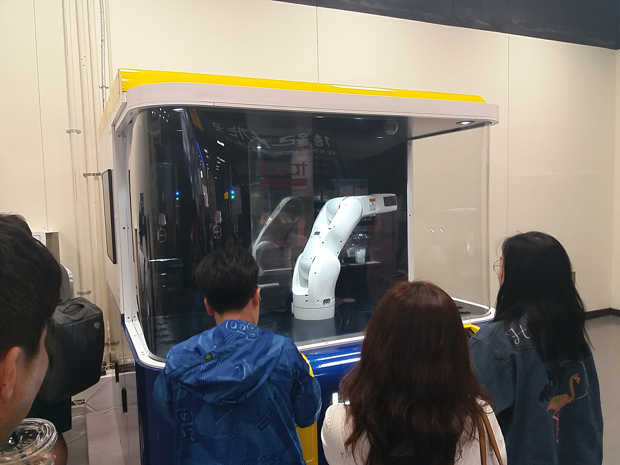 무언가 공장에서나 볼듯한 기계 팔이 주문한 커피를 만드는 모습이 낯설게 느껴집니다.