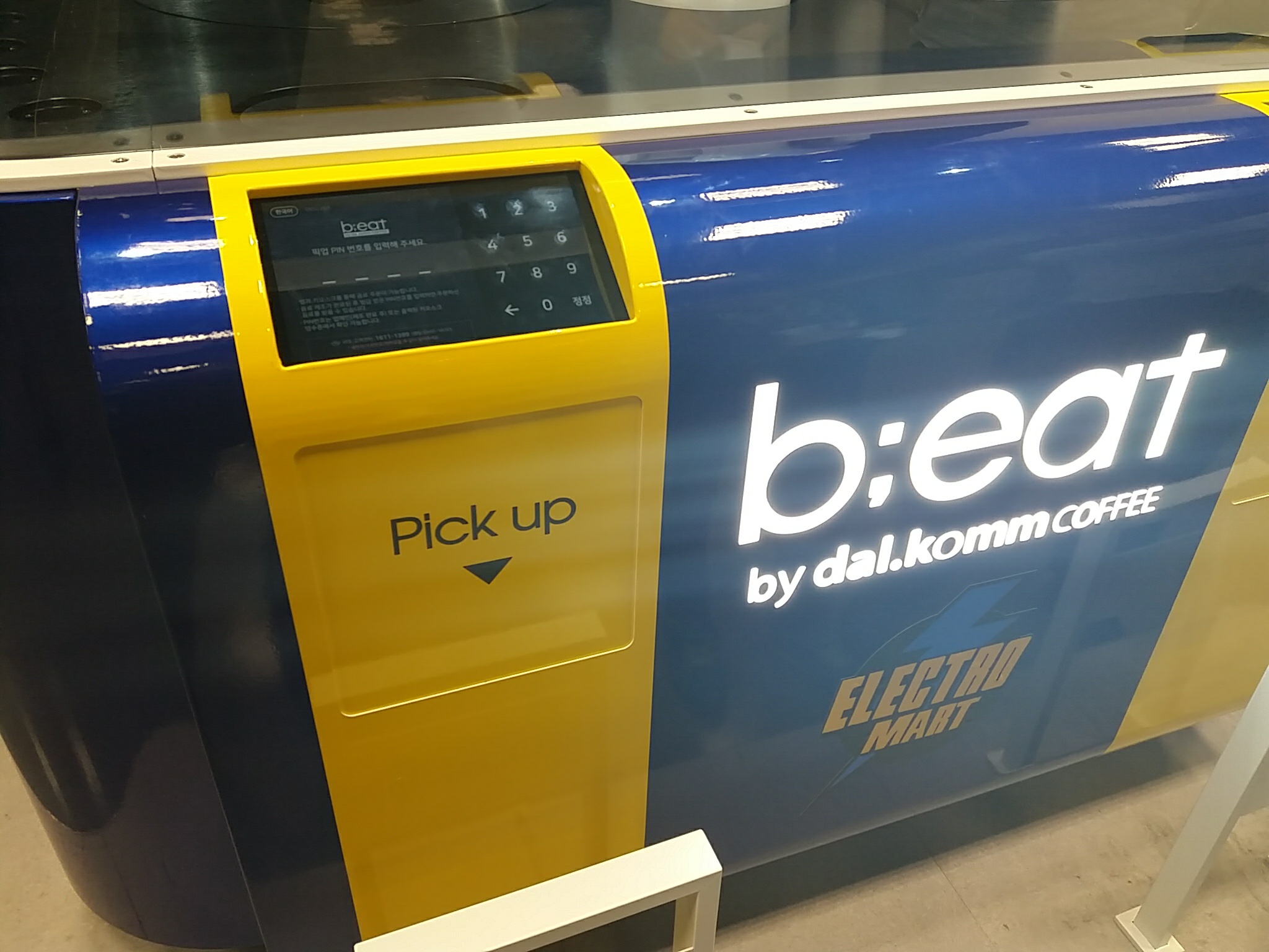그러면 해당 기계 앞에 핀번호를 입력하면 내가 주문한 음료를 꺼내어 줍니다.