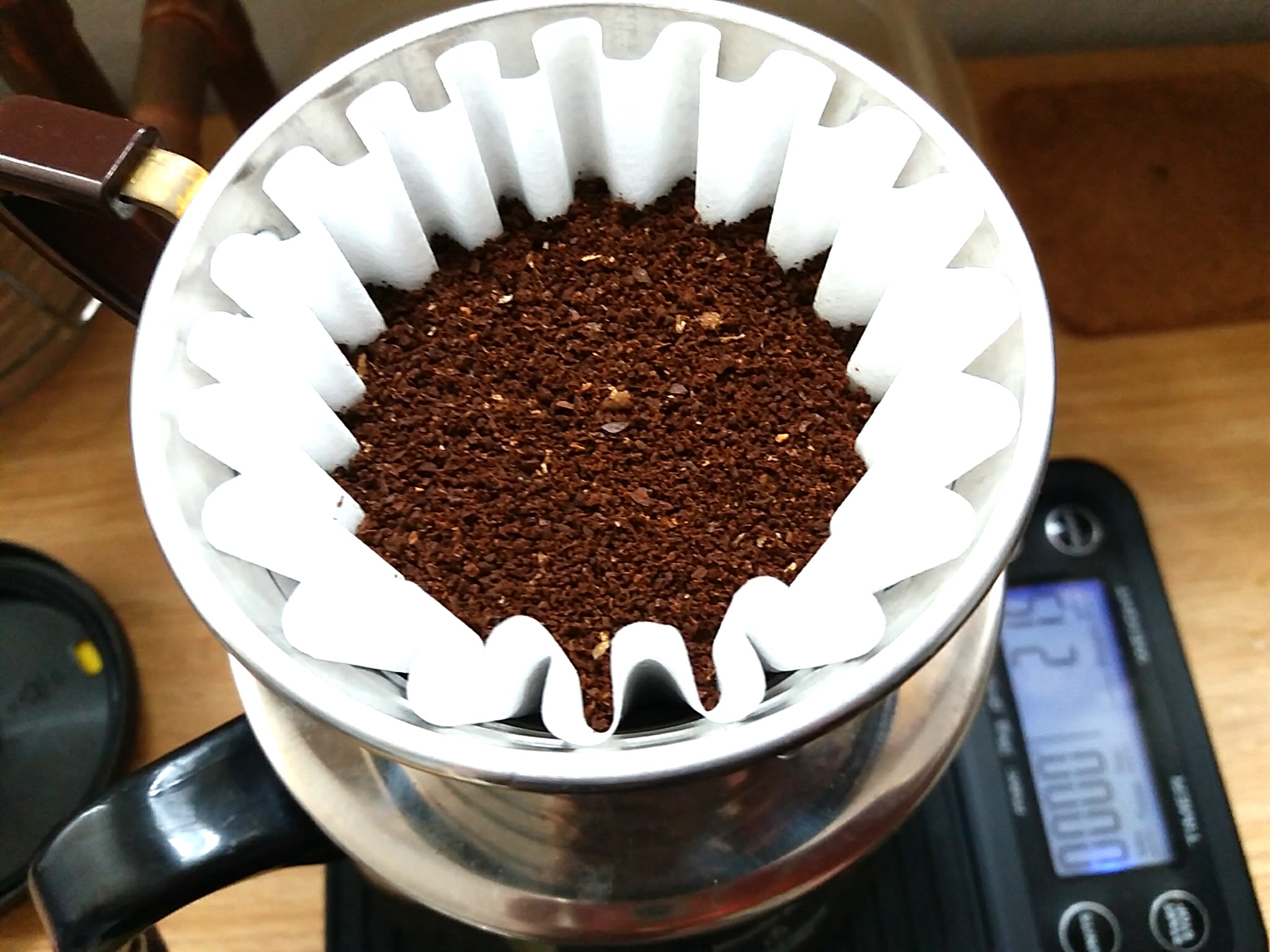 개인적으로는 원두 20g 사용 시에는 뜨거운 물을 약 200~250g 정도 부어주는데